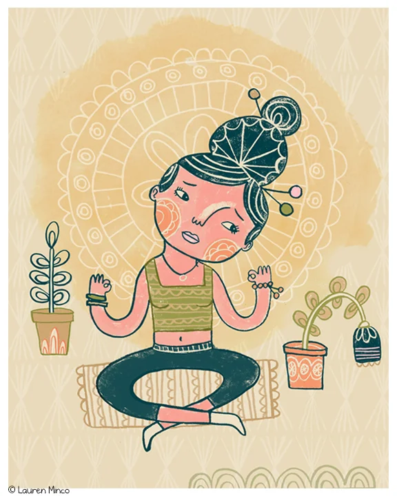 May (no class in April): an editorial illustration for an article about the difficulties of meditation.