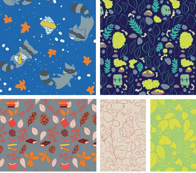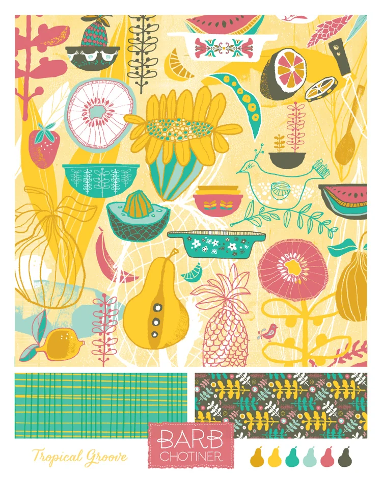 Tracy is another example of an illustrator who fell into surface design and pattern. She has a great sense of line work that she combines with killer color combinations and graphic vectors. I think her work is a wonderful example of how you can do vector art and still have it feel hand done with tons of character! Hop over to Tracy's website to see more illustration and pattern.
