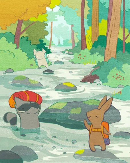 Eloise's work can be digital, watercolor, or a combination of both traditional media and computer magic. No matter what she does, her whimsical characters are definitely the stars of the show (my favorite is that raccoon above who is flying around grabbing marshmallows! Agh, so cute!). Go visit her website to see more cute critters.