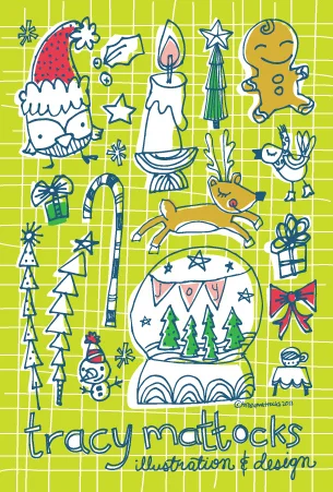Next up is Tracy Mattocks, another MATS graduate. I met Tracy while working at C.R. Gibson. We started about a month apart and ended up leaving about the same time to prepare for Surtex this year (her booth was right across from mine if you were there). Tracy has worked with some great clients including Crayola, Highlights Magazine, and Scholatic (just to name a few off of her impressive list!). She is also a regular on the blog They Draw & Cook. In fact, she recently came in third place for their recent Kale contest held with Glad Company!