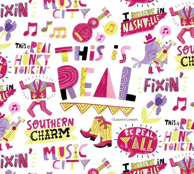 I had the pleasure of working on LG Mobile’s “This Is Real” campaign for their Nashville Pop-Up event celebrating the LG V30 phone.. The project involved a main pattern that was used for packaging and multiple icons that were printed on tote bags and other products that attendees could choose and customize.